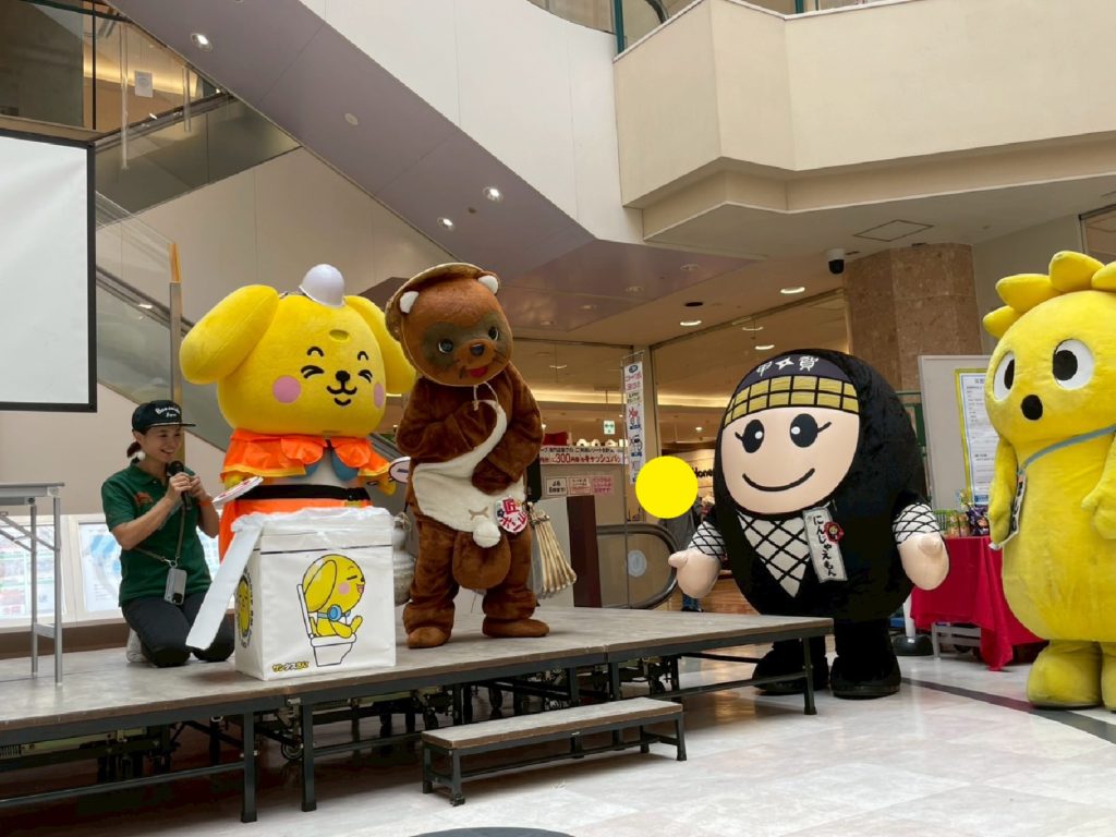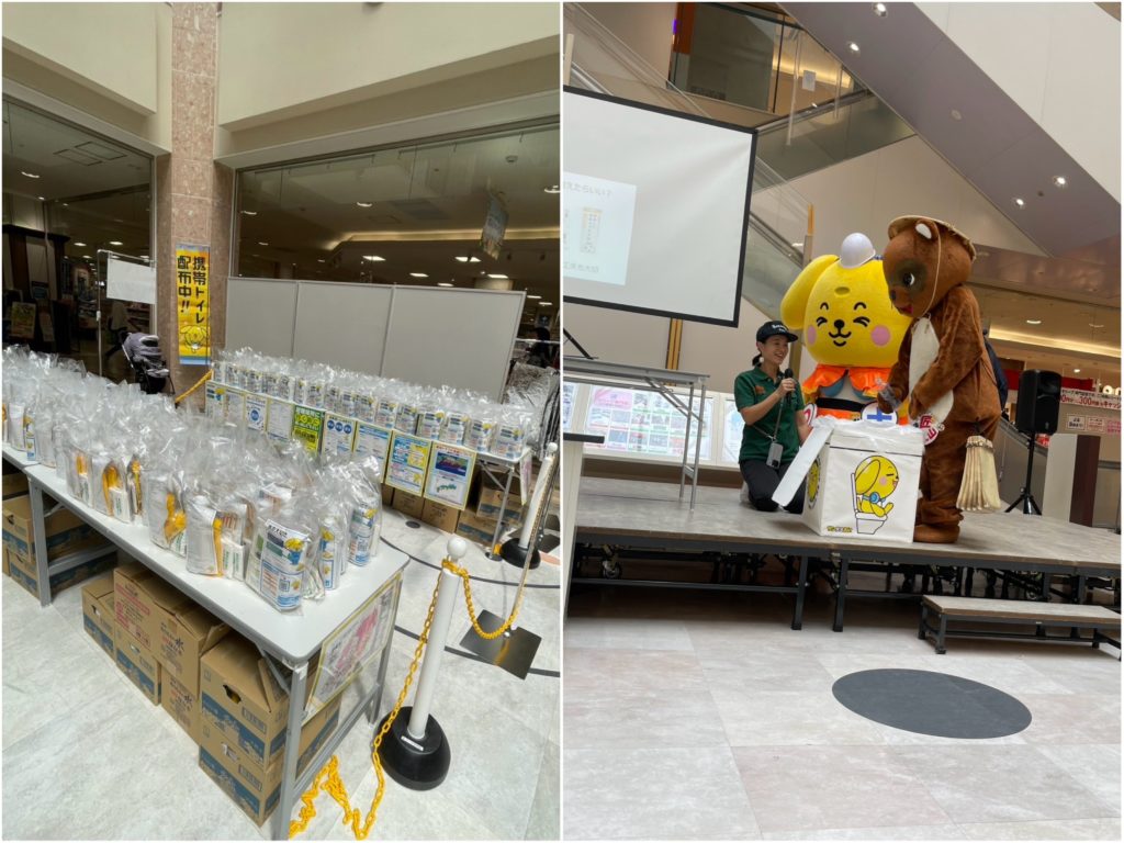 今回もイベントの主旨に賛同してくださったキャラさんにご協力いただき、備蓄水と携帯トイレ、長期保存用のボディシートなどを配布しました。